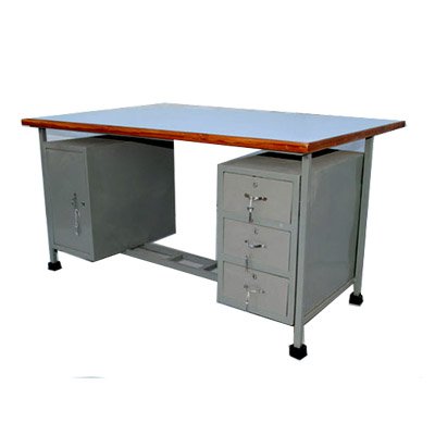 टेबल ऑफीसर लोखंडी ५' x ३' x २.५', उजव्या बाजूस तिन ड्रॉवर डाव्या बाजूस कपाट सनटॉप