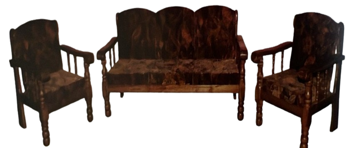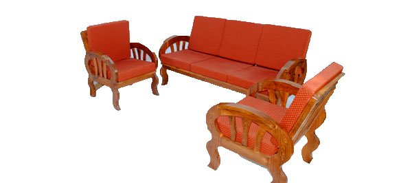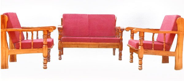 सोफा सेट १. ३ सीटर व २ सिंगल सिटर कुशनसह (क्र. ४) सागवानी